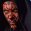 Description: darth maul in bright light with his hood up, three-quarter view of his face